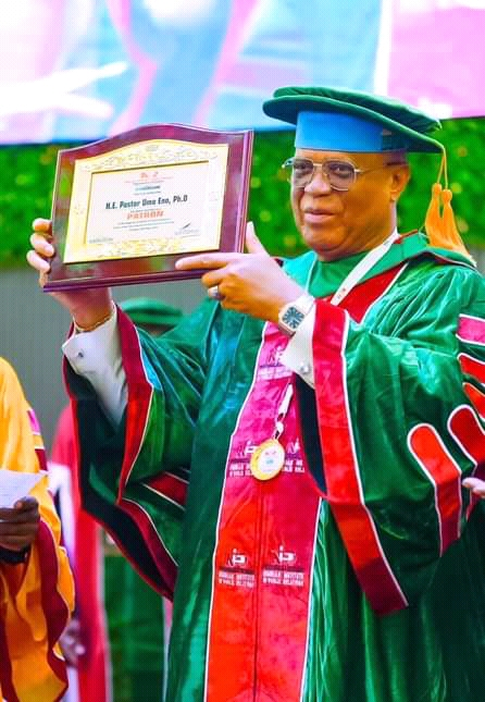 Accepting the honour, Governor Eno promised to abide by the code of conduct that governs the Institute as well as support the ideals of the organisation.
