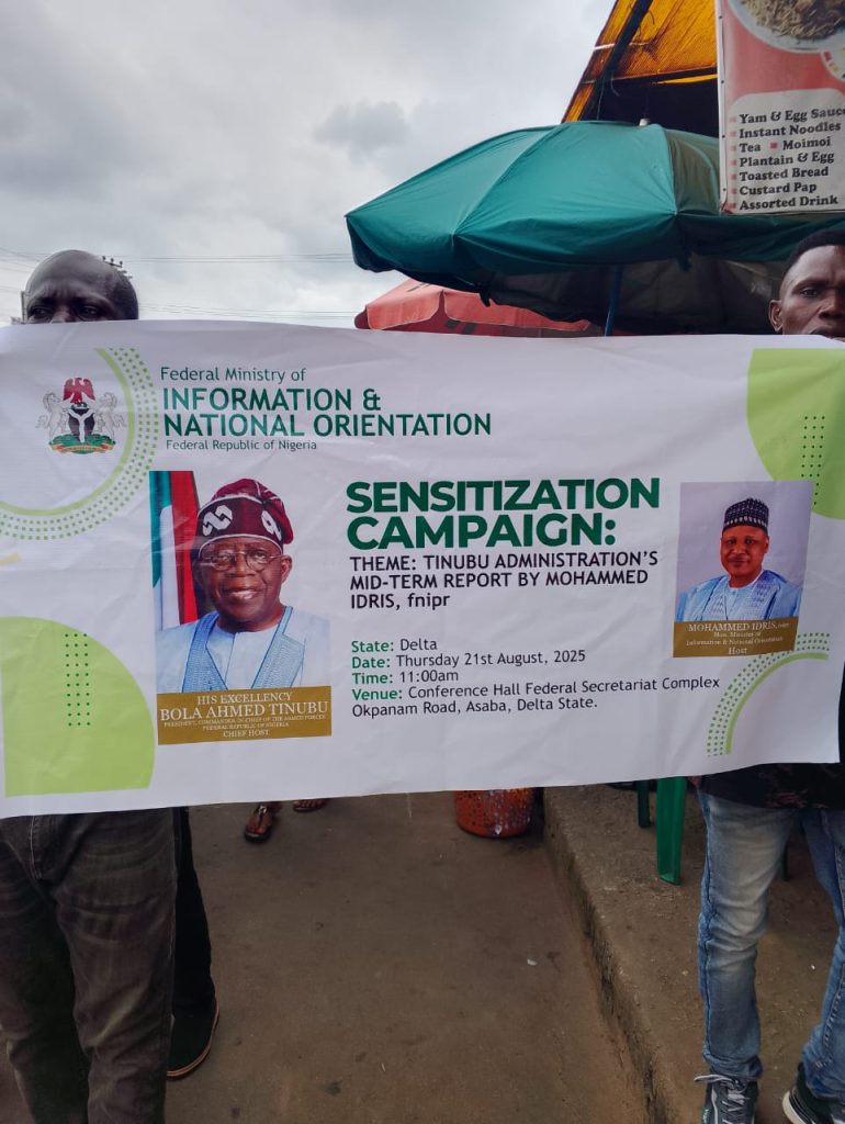 Federal Ministry of Information and National Orientation has taken its sensitization rally on the mid-term achievements of President Bola Tinubu’s administration to midwifery markets, Anioma markets along Okpanam road, and NTA road fruits markets Asaba.