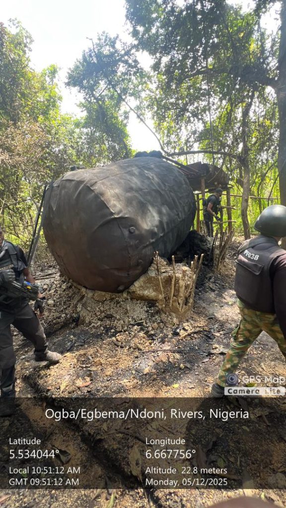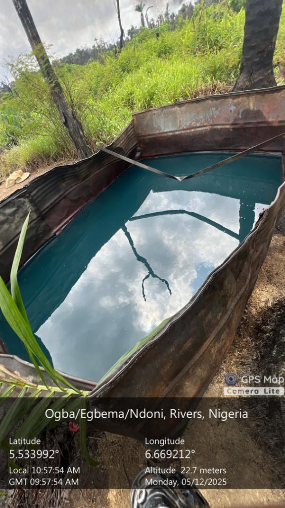 The Navy Commodore said, “On 12 May 2025, the Nigerian Navy Ship PATHFINDER successfully conducted an operation against crude oil theft and illegal bunkering activities within the Ogba/Egbema/Ndoni general area.