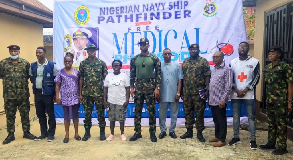 The Nigerian Navy Ship (NNS) PATHFINDER has delivered free medicines, insecticide-treated nets, and other essential medical supplies to over two thousand residents in Abonnema Town, Akuku-Toru Local Government Area of Rivers State, as part of its Medical Rhapsody.