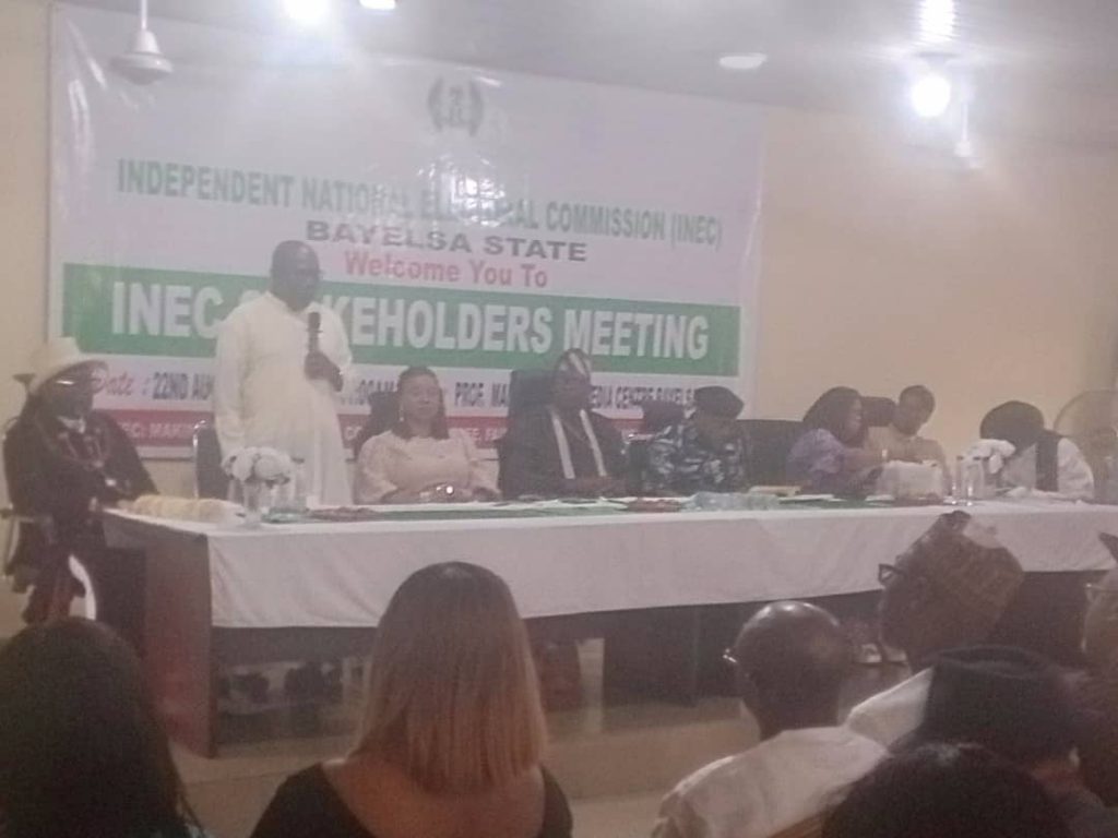 Resident Electoral Commissioner of the Independent National Electoral Commission, Bayelsa State, Mallam Isah Ehimeakhe made this known at a stakeholders’ meeting held at the Professor Mahmud Yakubu Media Center at the INEC State Headquarters in Yenagoa.